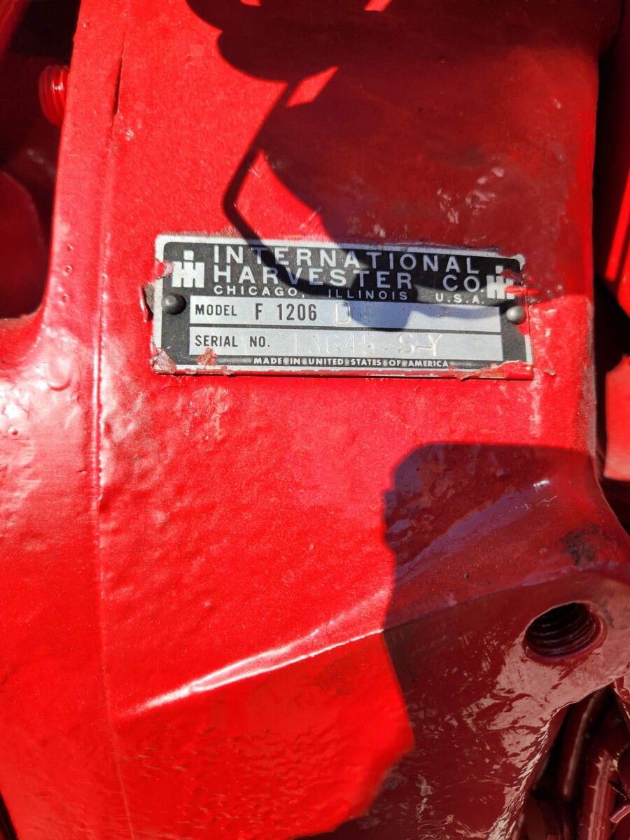 - Farmall F 1206 D, S#13645 S-Y, diesel turbo tractor, 7086 hrs. made in USA