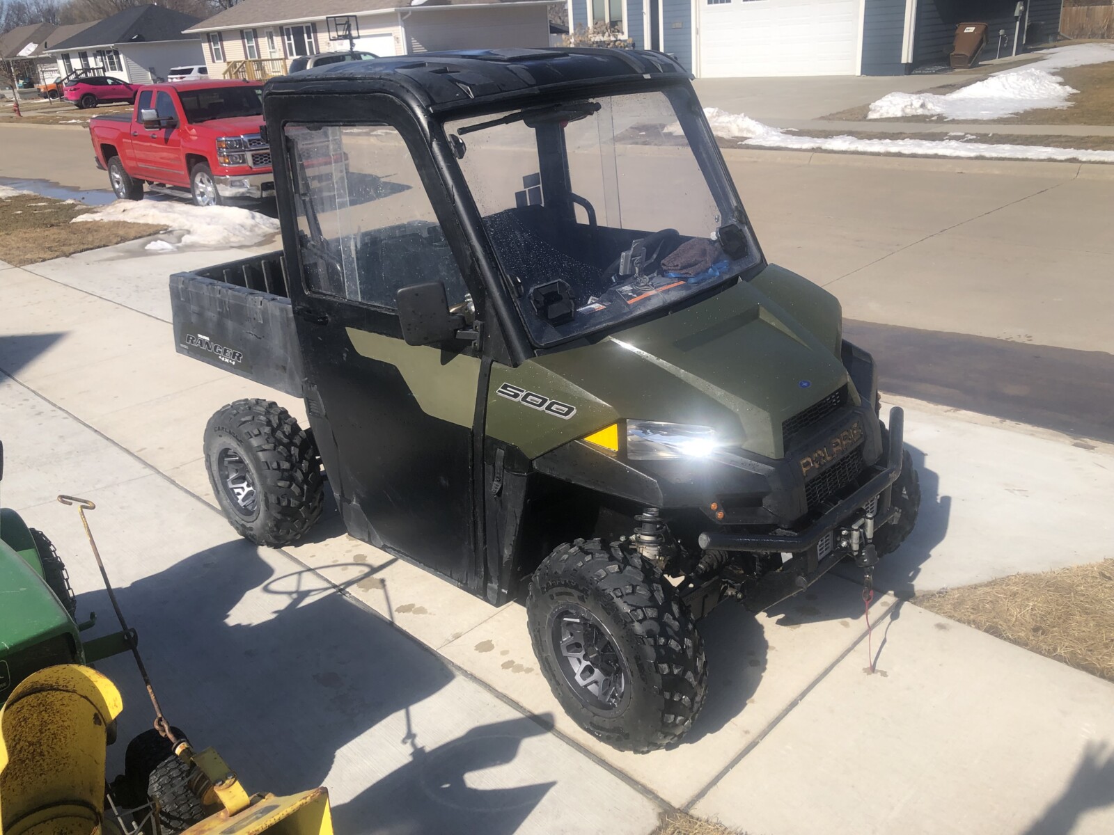 - 2018 Polaris Ranger 500, front and rear windshields, wiper, turn signals, 3500 lb. winch, Vision aluminum wheels, low hrs and miles, retiree owned