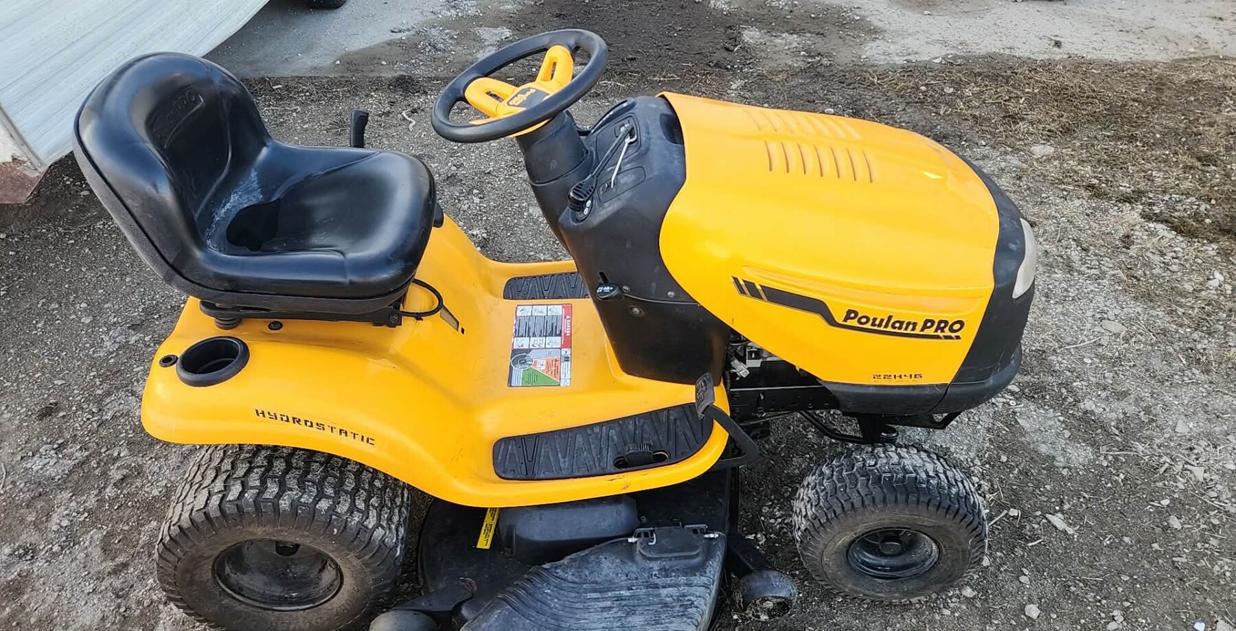 - Poulan Pro 22 Hp, 46″ deck lawn mower