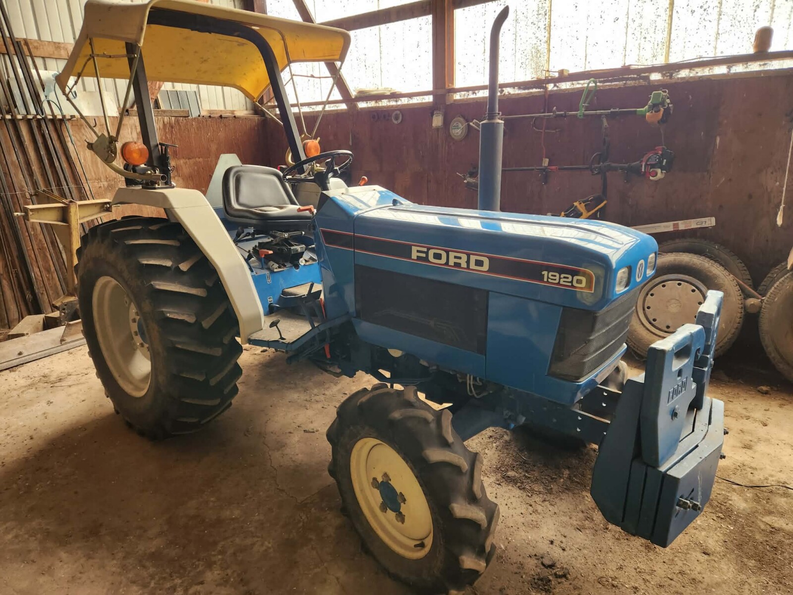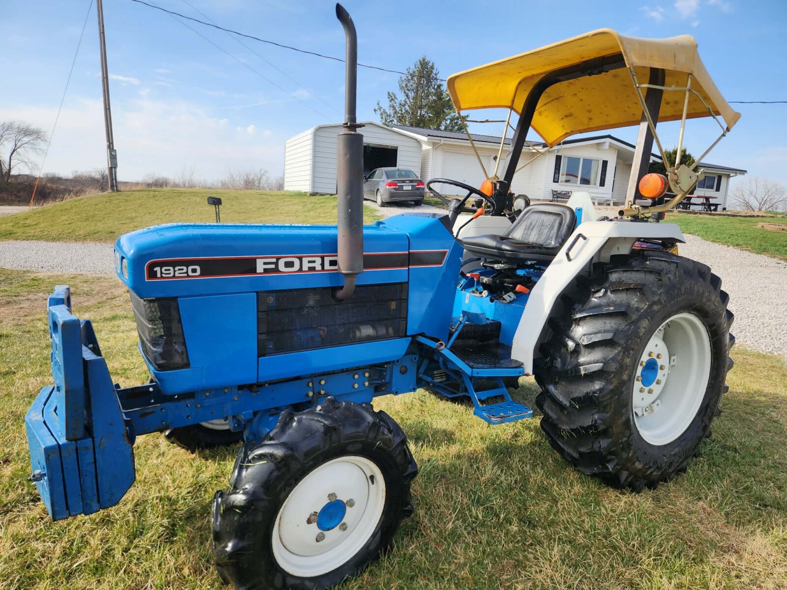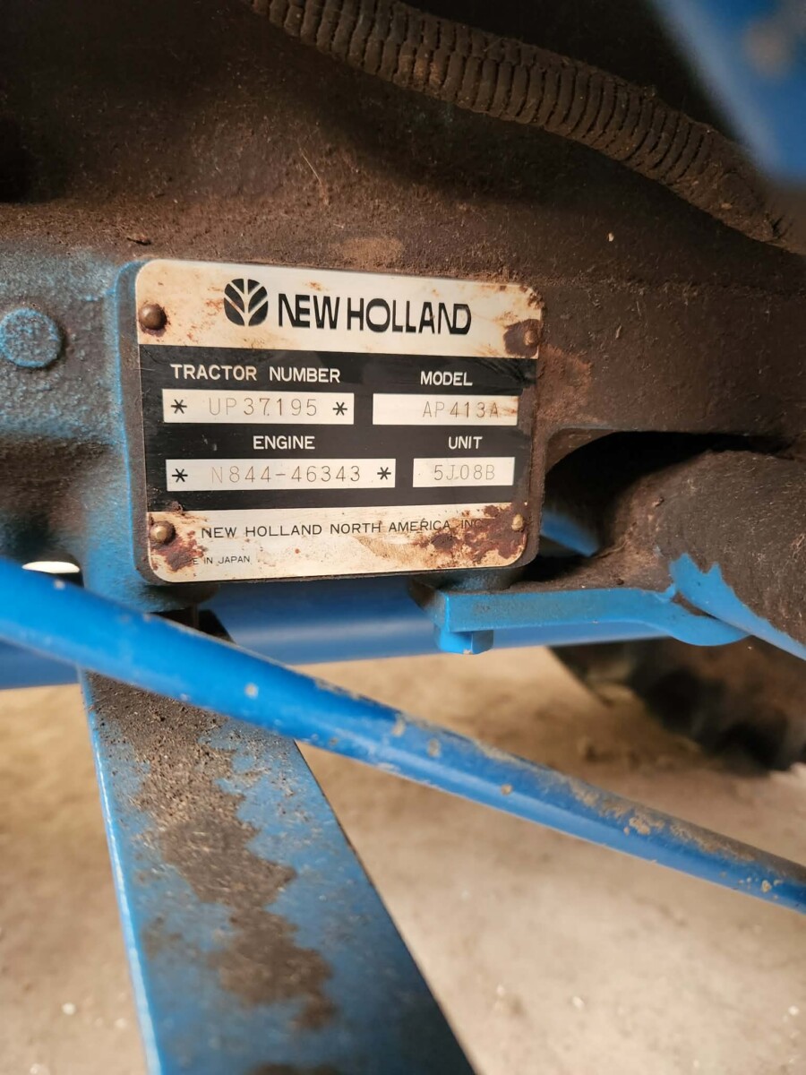 - 1920 Ford tractor,1990 yr., 4 cyl. diesel, 33 hp, 12 sp. w/ 4 sp. reverse, MFWD, 1700 lb. lift, S#UP37195, model # AP413A, single owner