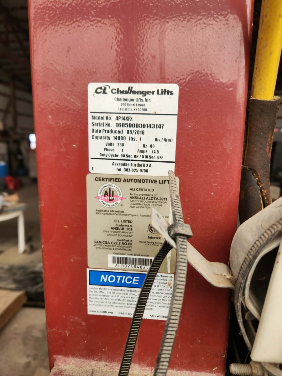 - 2016 Challenger 14k lb. automotive lift, model # 4P14XFX, S#160500000143147