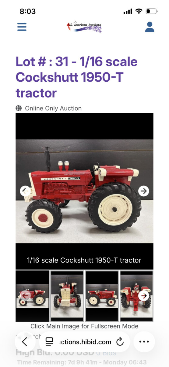 A premier collection of over 10,000 die-cast and scale models, spanning 50 years of dedicated curation. From the intricate detail of 1:64 replicas to the commanding presence of 1/8 scale masterpieces, this assembly captures the evolution of agricultural history and diecast precision. Possibly the beginning of 30 auctions.