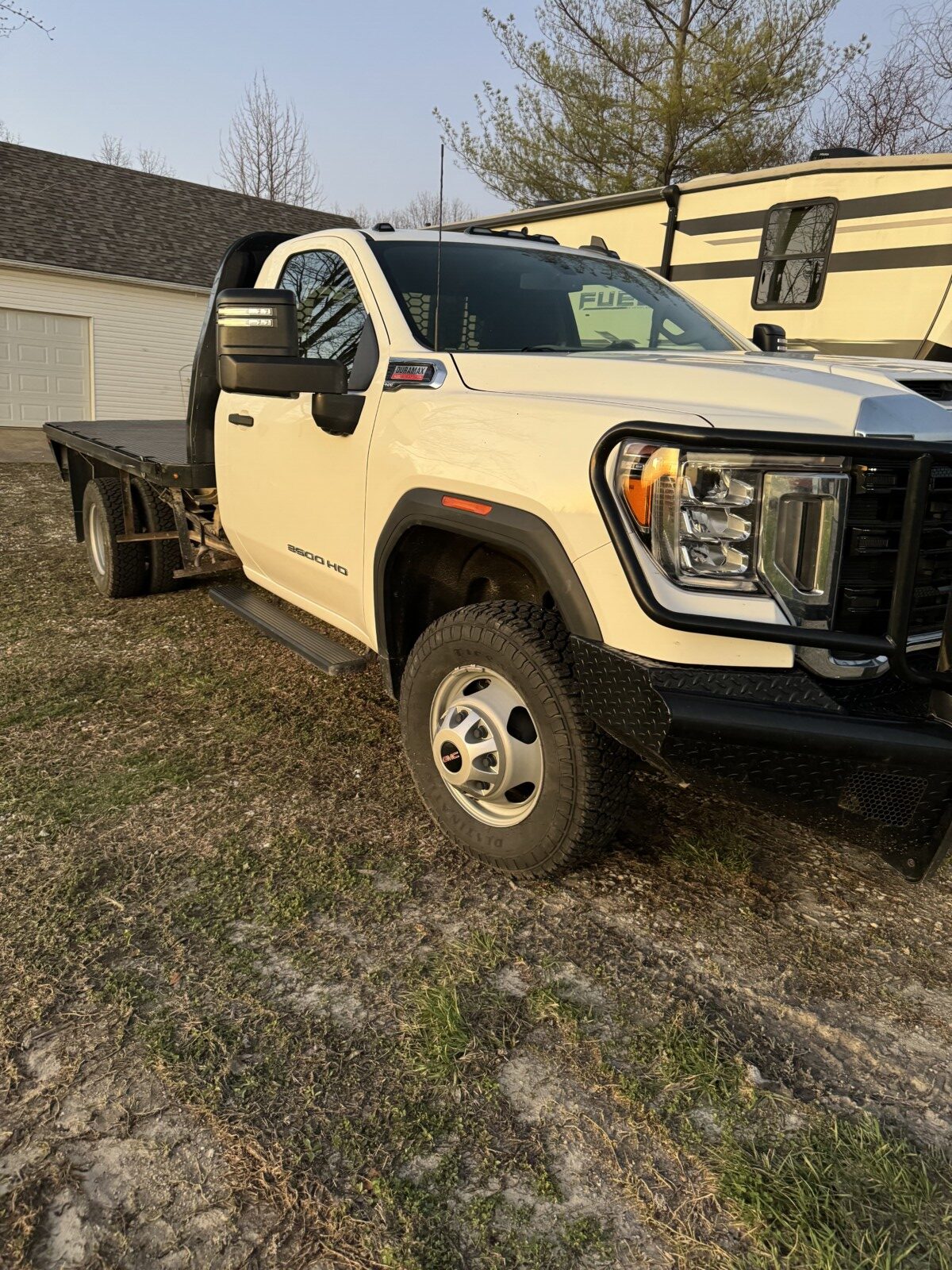 - 2021 GMC 4×4 single cab and chassis with 11’6″ flatbed, new tires, 36k miles